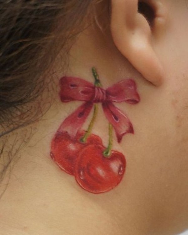 颈部樱桃小图案纹身