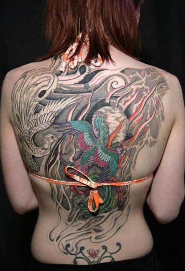 凤凰纹身 后背凤凰纹身人不多,但是很好看