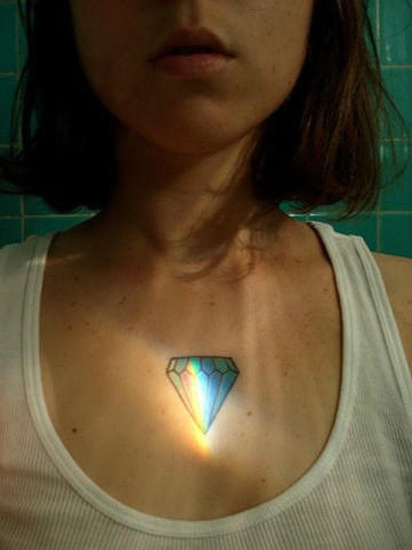 女生颈部彩色钻石个性纹身