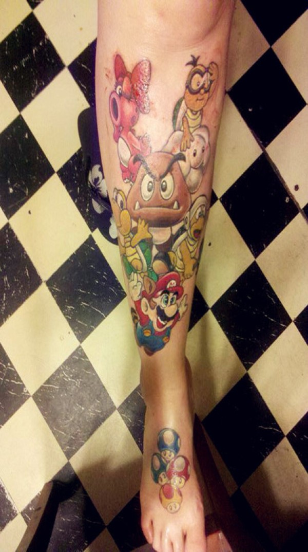 腿部那些可爱又可怕的游戏纹身系列