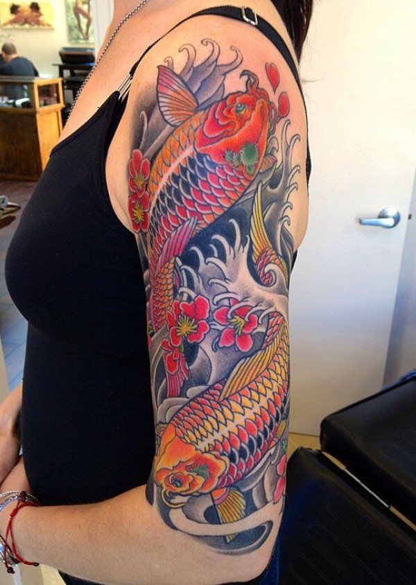 时尚绚丽的鲤鱼花臂纹身