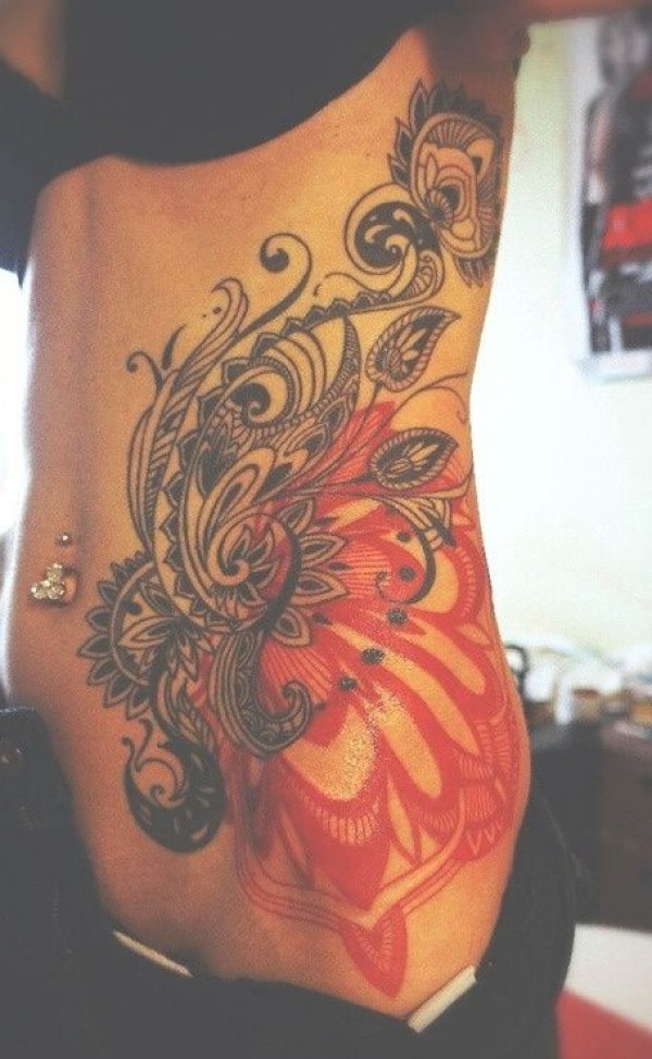 女性腰部莲花花纹刺青_腰部纹身图案大全_纹身图吧