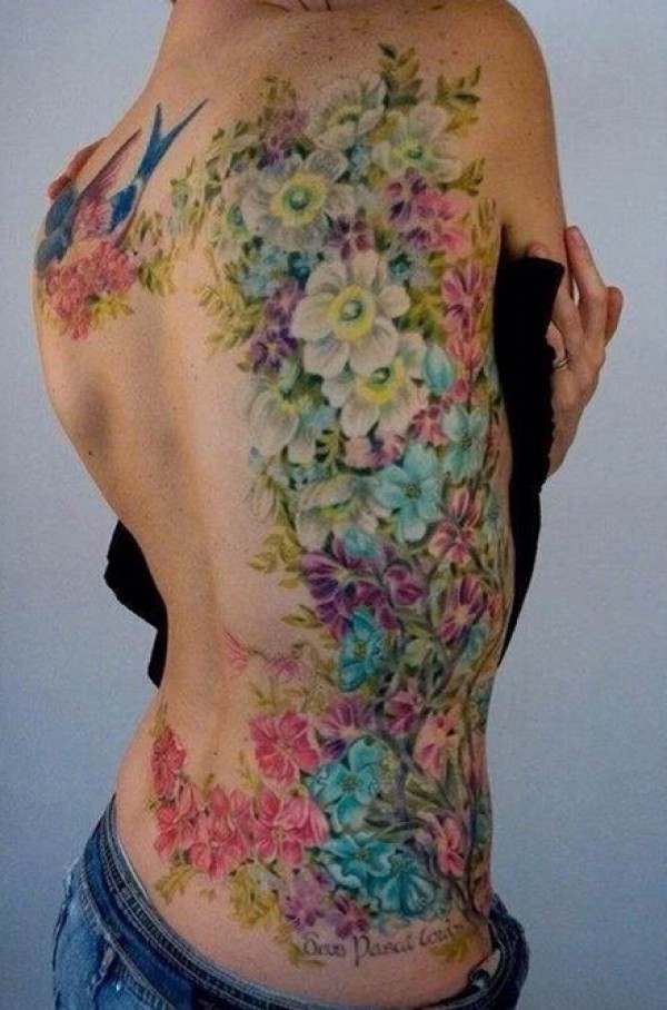 分享一款腰部时尚性感的蝶恋花纹身图案_腰部纹身图案大全_纹身图吧