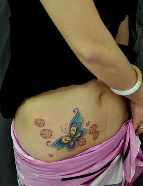 分享一款腰部时尚性感的蝶恋花纹身图案_腰部纹身图案大全_纹身图吧