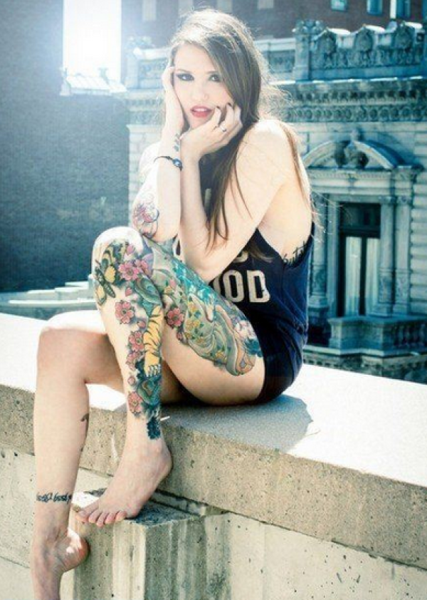 女孩腿部唯美刺青_腿部纹身图案大全_纹身图吧