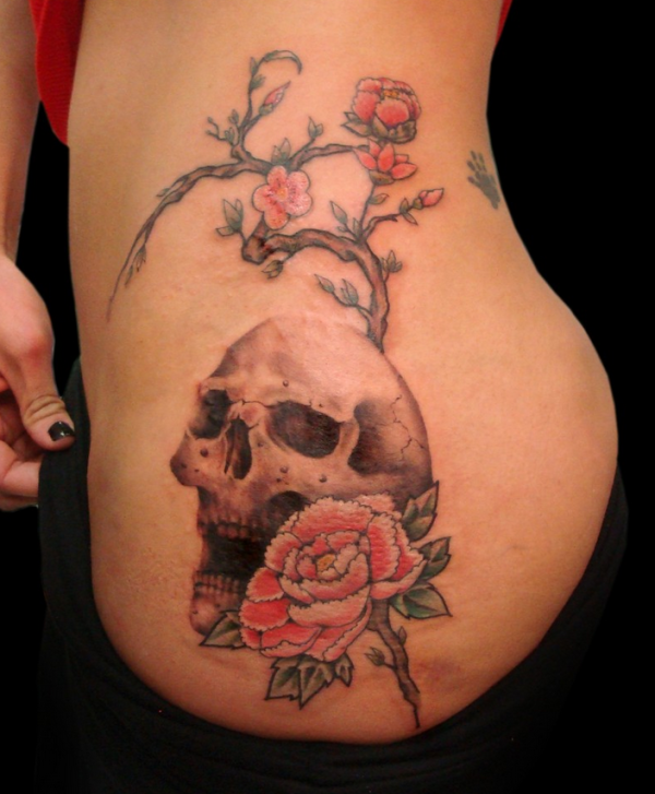 侧腰女骷髅刺青图案图片_骷髅纹身图案大全_纹身图吧
