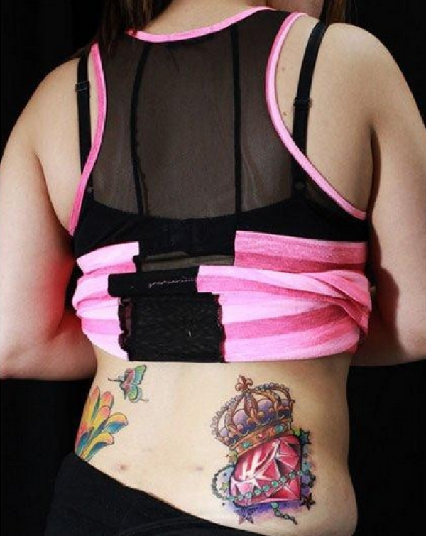 分享一款腰部时尚性感的蝶恋花纹身图案_腰部纹身图案大全_纹身图吧