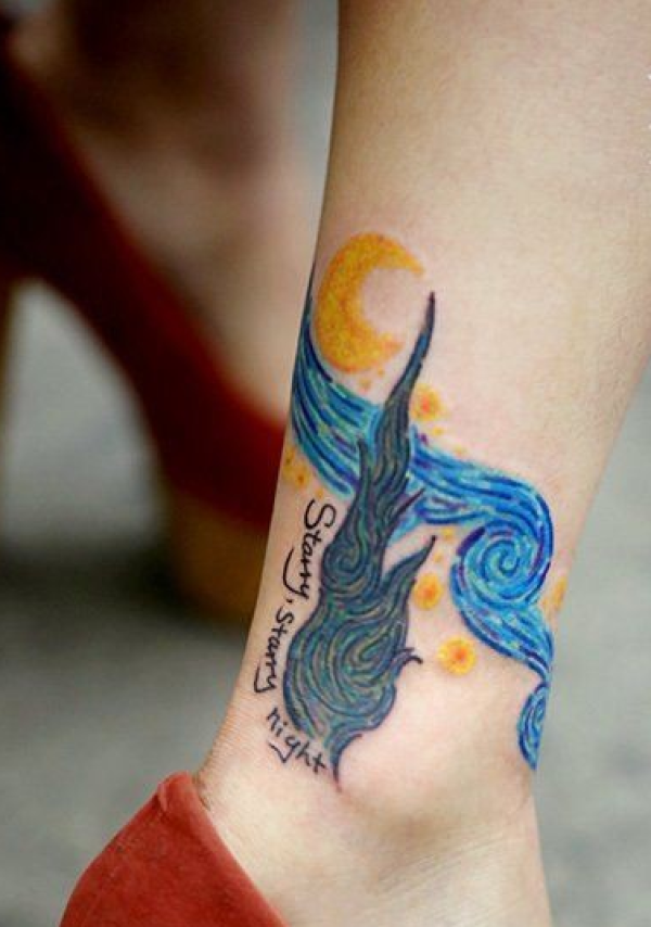 一张美女脚踝星空纹身作品