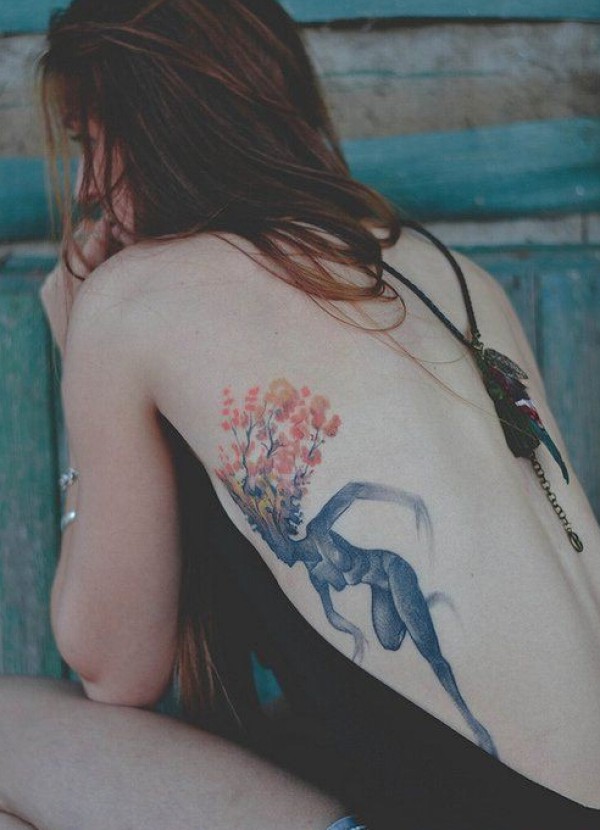 分享一款腰部时尚性感的蝶恋花纹身图案_腰部纹身图案大全_纹身图吧