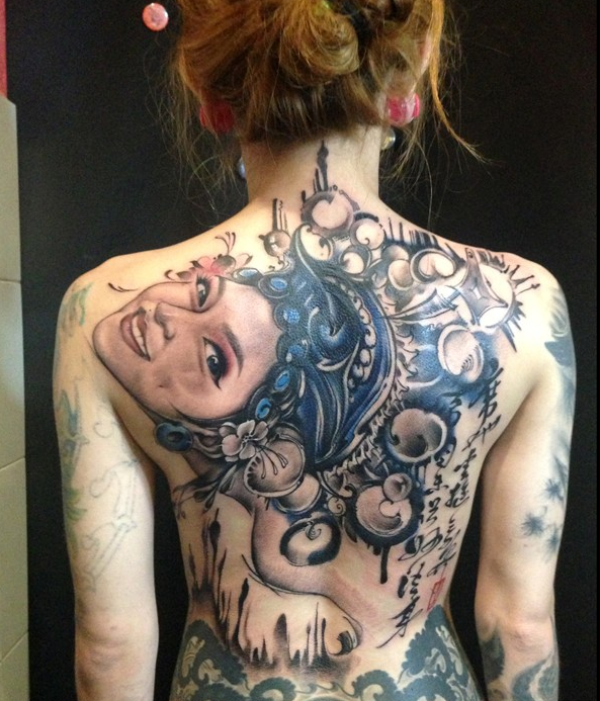 马来西亚美女纹身师kinki ryusaki后背美女纹身