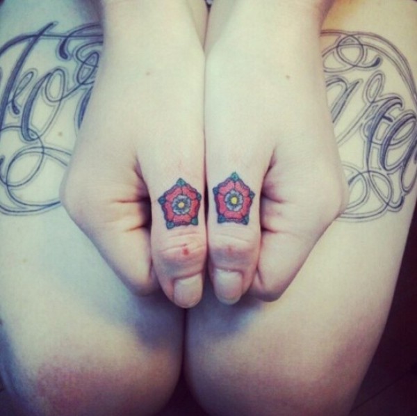 大指姆上小小的花朵纹身