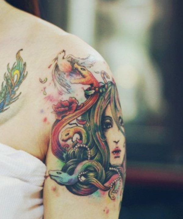 手臂莲花蛇纹身图案_臂部纹身图案大全_纹身图吧