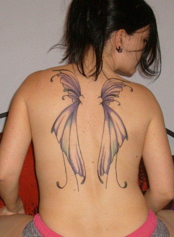 女生背部漂亮的蝴蝶翅膀纹身