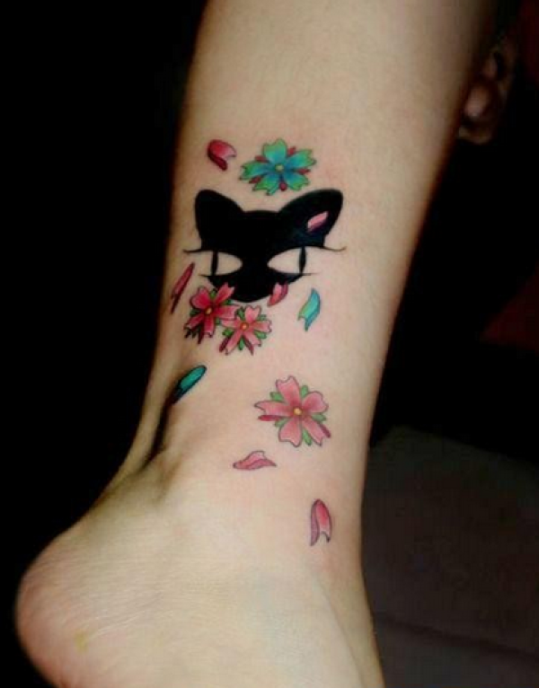 清新小桃花脚踝纹身_脚部纹身图案大全_纹身图吧