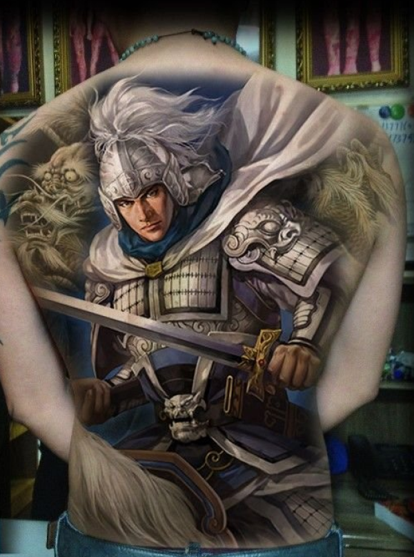 男士满背赵子龙纹身图案