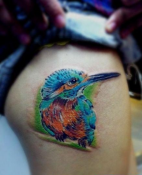 女性腿部漂亮的彩色小鸟纹身图片