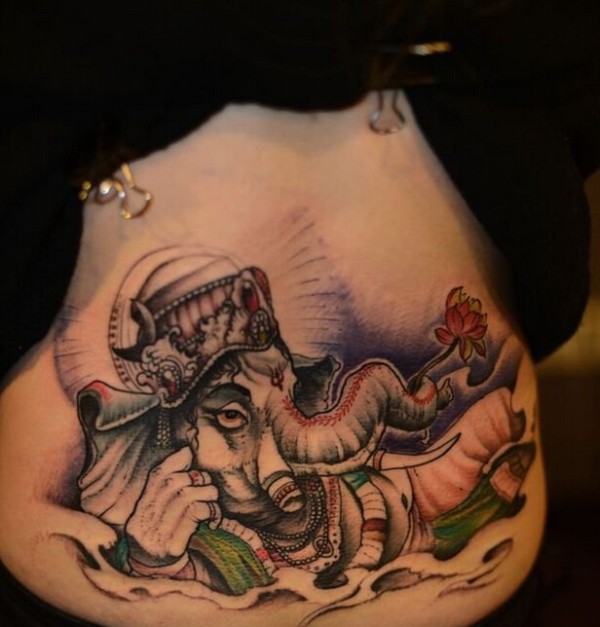 女性腰部莲花花纹刺青_腰部纹身图案大全_纹身图吧