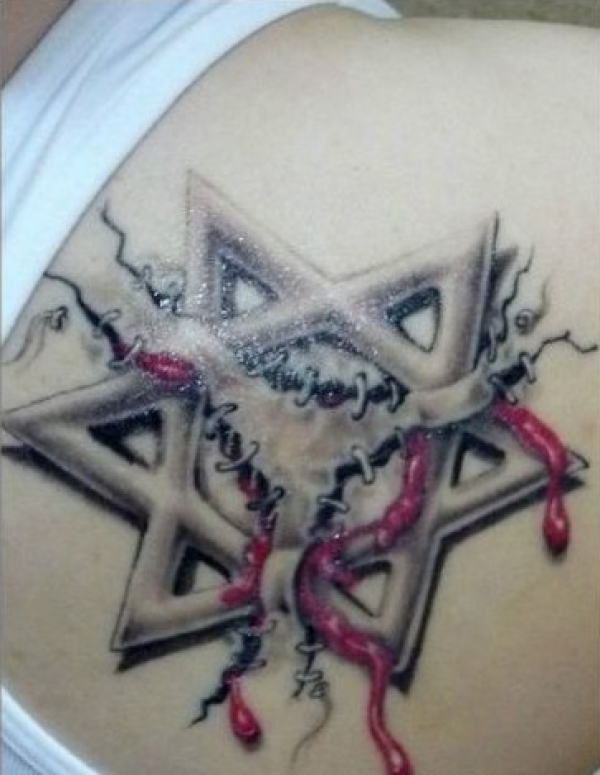 好看的撕皮滴血六芒星纹身