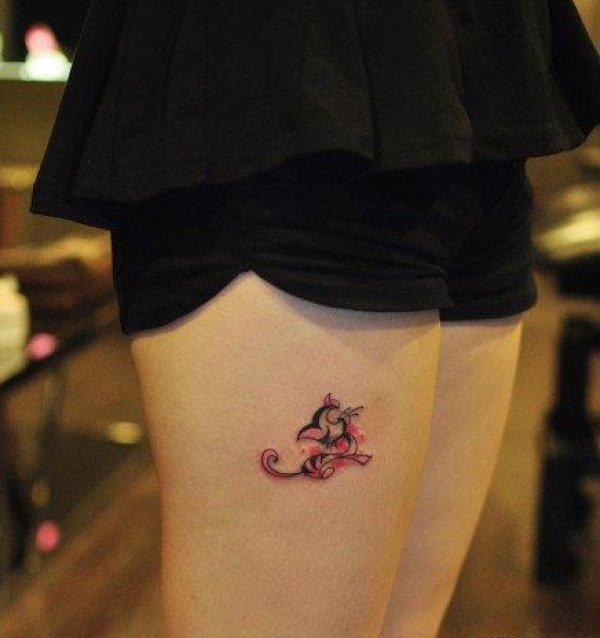 靓女腿部乖巧可爱的图腾猫咪纹身图案