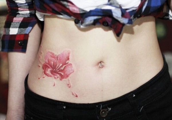 女性腰部莲花花纹刺青_腰部纹身图案大全_纹身图吧