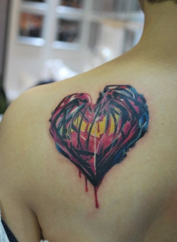 肩背的爱心纹身图案