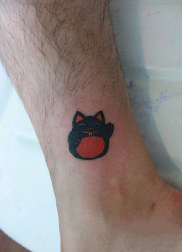 招财猫脚踝纹身图案