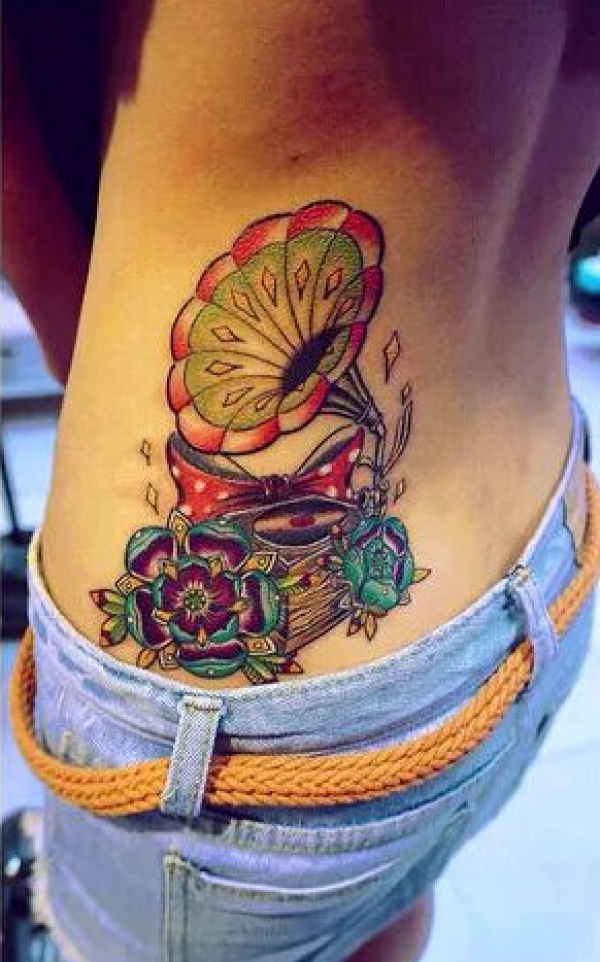 分享一款腰部时尚性感的蝶恋花纹身图案_腰部纹身图案大全_纹身图吧
