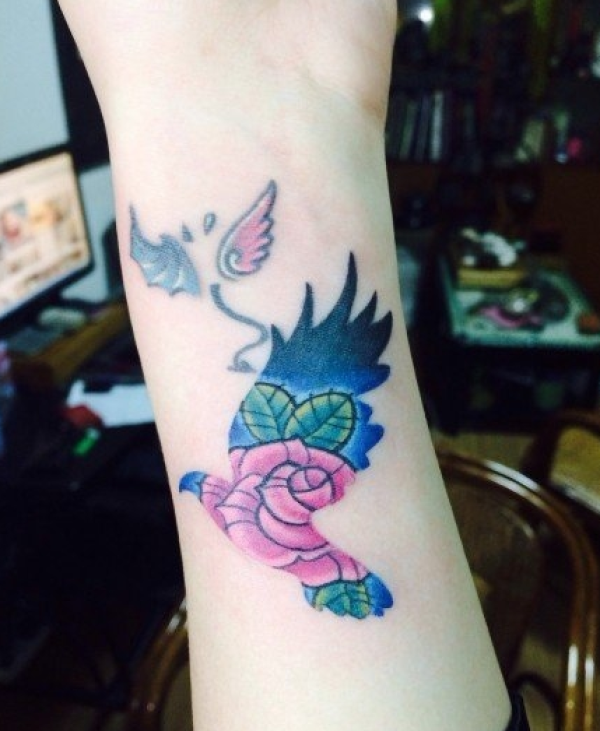 手臂一款彩色蘑菇纹身图案_臂部纹身图案大全_纹身图吧
