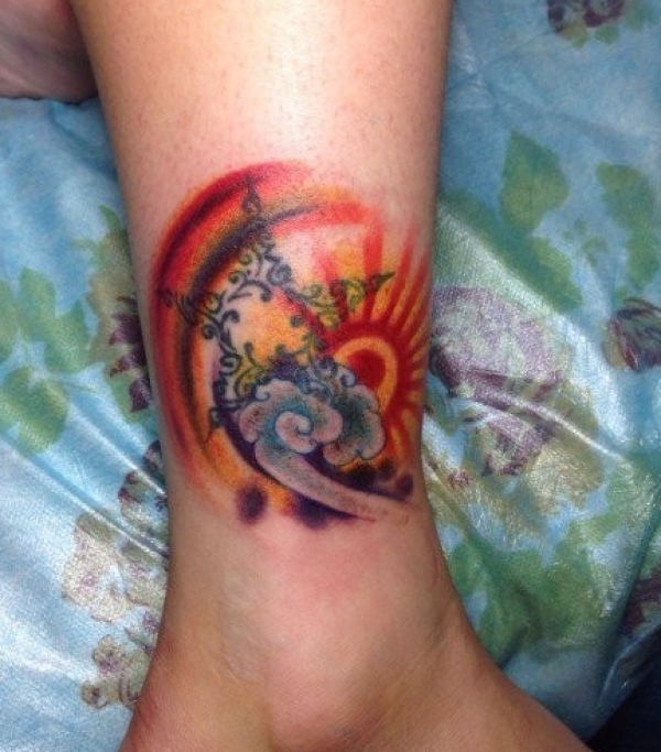 女生脚踝向日葵纹身_脚部纹身图案大全_纹身图吧