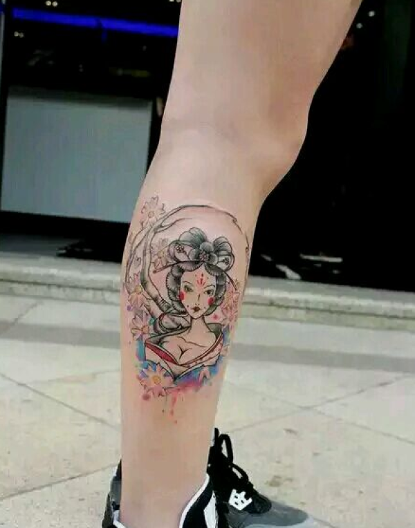 小腿艺妓纹身图案