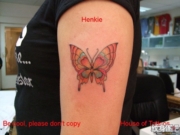 手臂橘色蝴蝶纹身