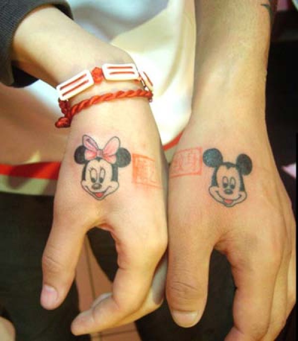 虎口卡通米奇情侣纹身图案