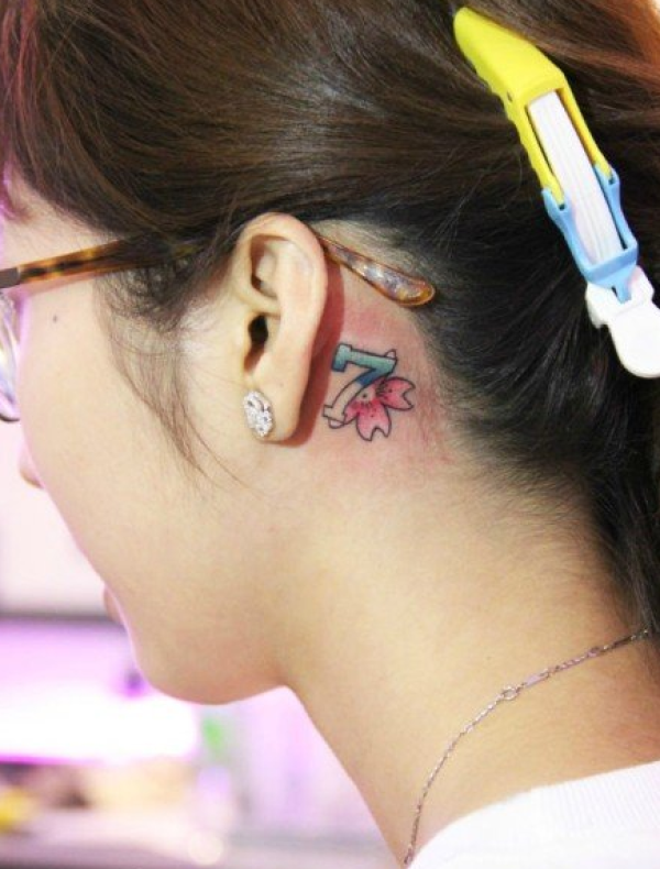 耳后小清新数字纹身图片