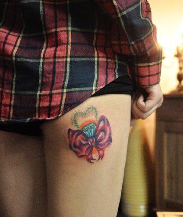 女生臀部时尚时尚的蝴蝶结钻石纹身图案