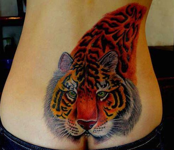 侧腰霸气老虎头纹身_腰部纹身图案大全_纹身图吧