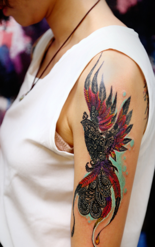 女生手臂个性的凤凰图腾纹身