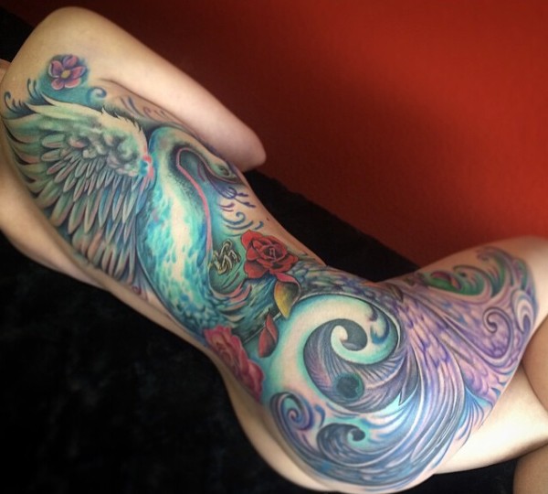 美女半身炫丽的凤凰纹身