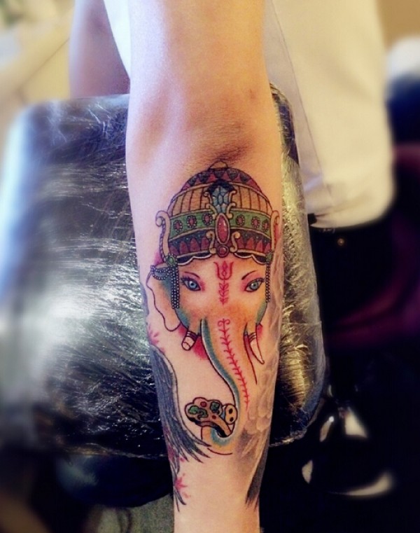 手臂漂亮的象神纹身图案