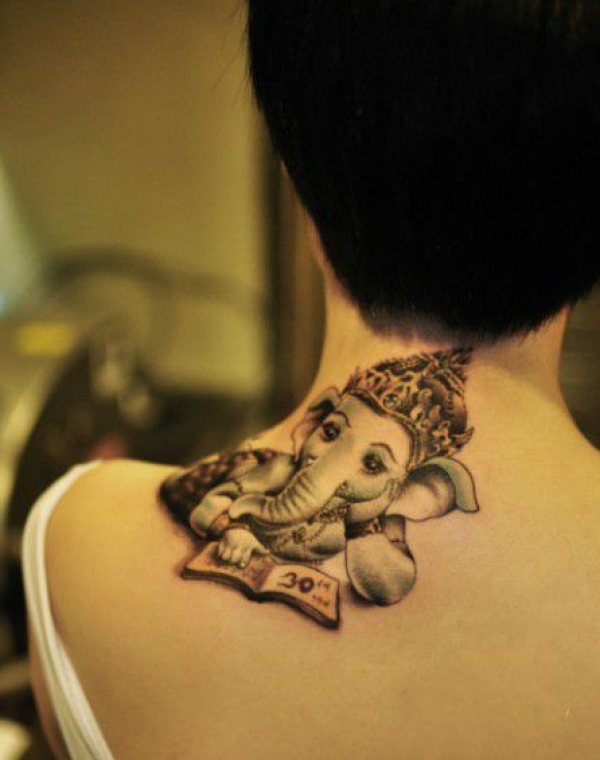 后颈部纹身小图--9张女生脖子后颈处的简约纹身图案