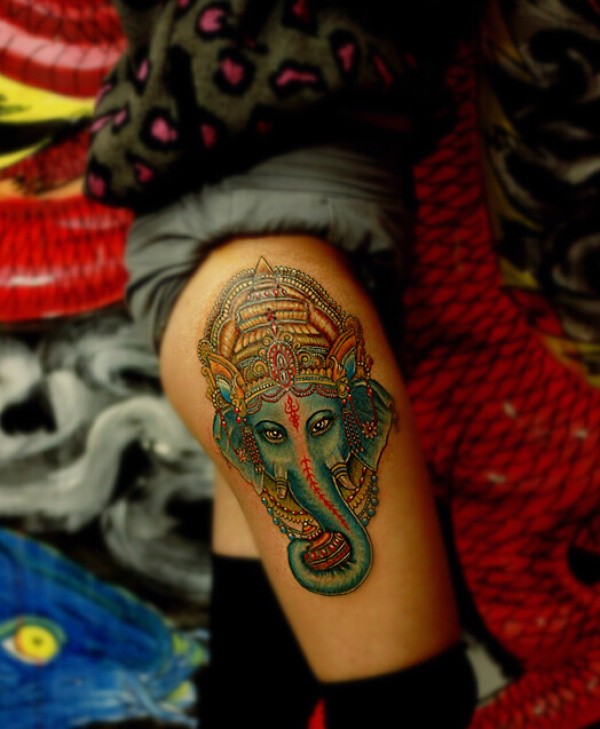 小腿上一款大象纹身图案_腿部纹身图案大全_纹身图吧