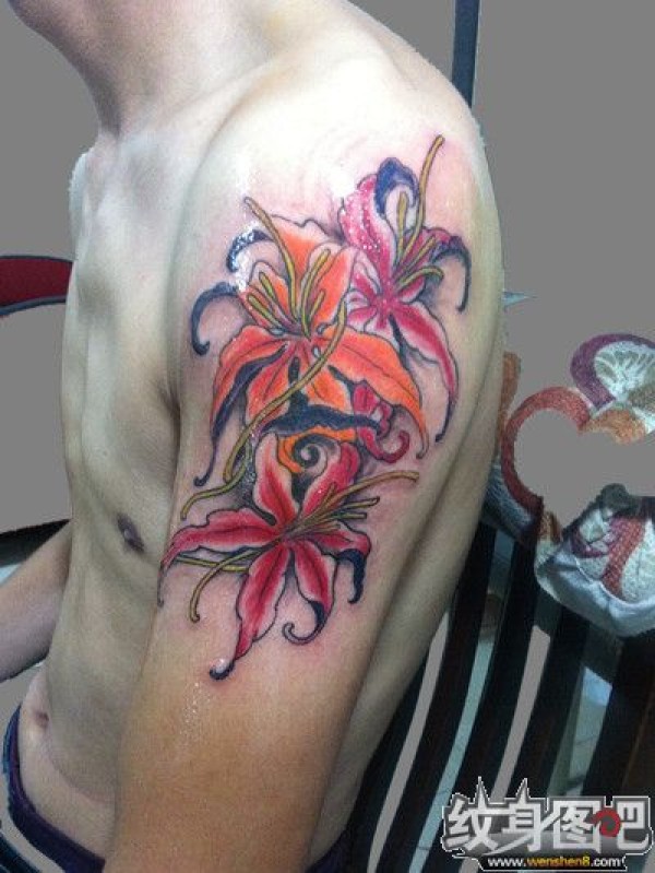 女生肩花纹身_15张女性双肩对称的肩花纹身图案作品图片