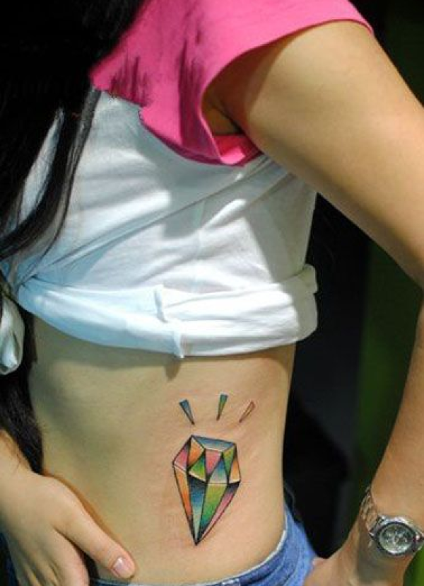 美女彩色钻石腰部纹身
