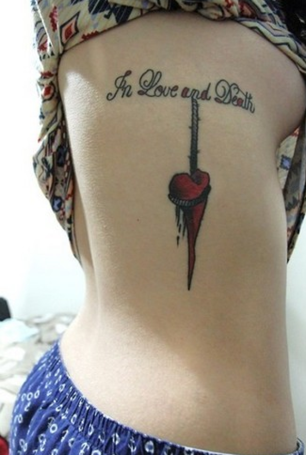 分享一款腰部时尚性感的蝶恋花纹身图案_腰部纹身图案大全_纹身图吧