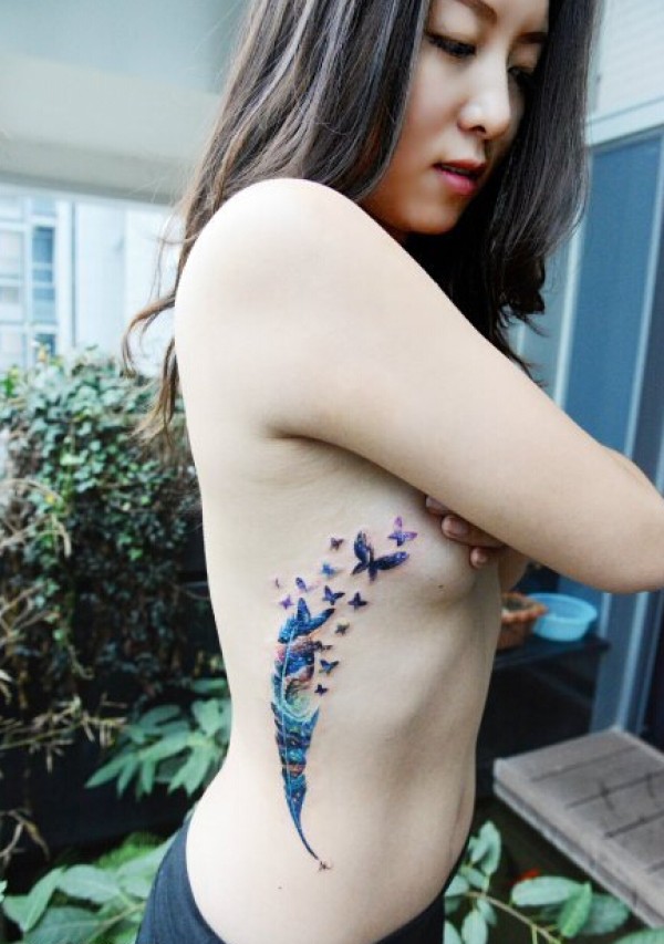 分享一款腰部时尚性感的蝶恋花纹身图案_腰部纹身图案大全_纹身图吧