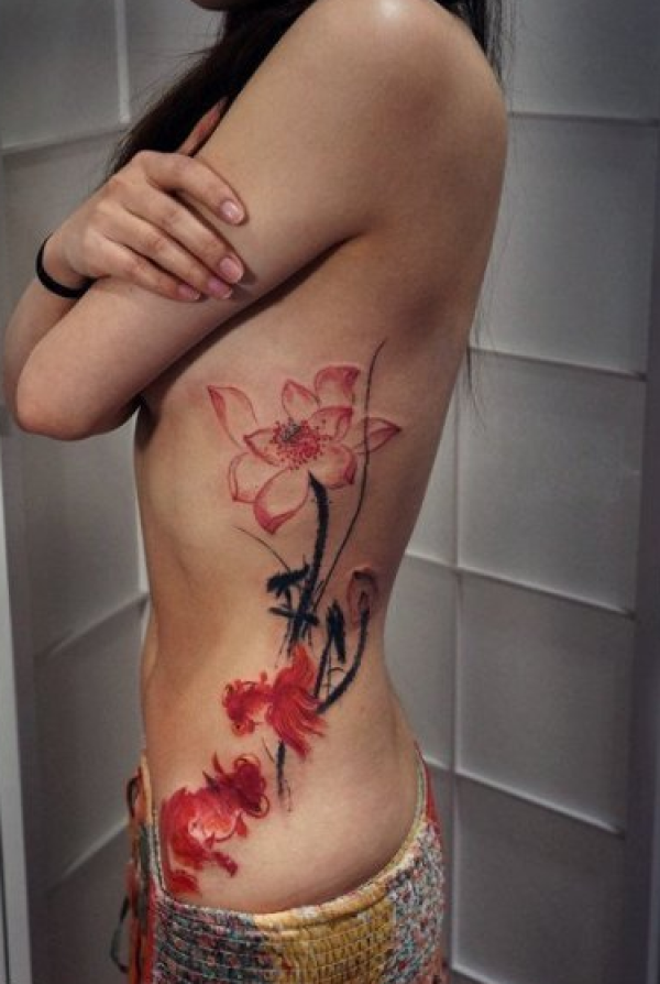 女性腰部莲花花纹刺青_腰部纹身图案大全_纹身图吧