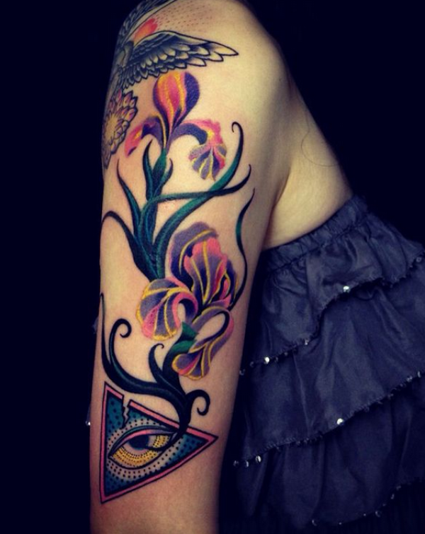 女生手臂三角眼花臂纹身