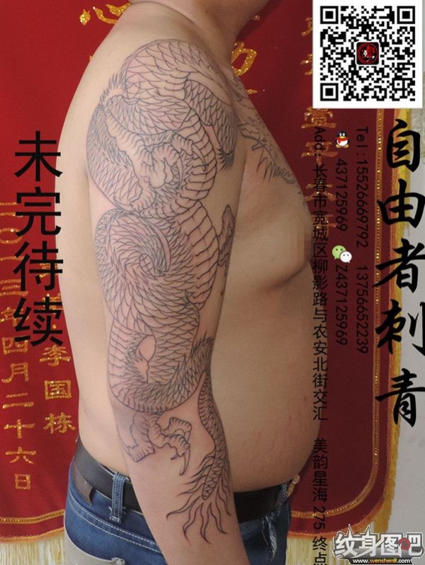 过肩大臂龙未完,长春自由者刺青