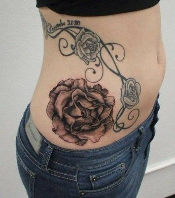 性感腰部玫瑰纹身图图案