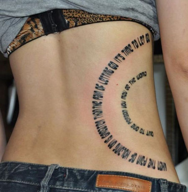 女生后腰纹身黑白灰风格抽象线条纹身图案
