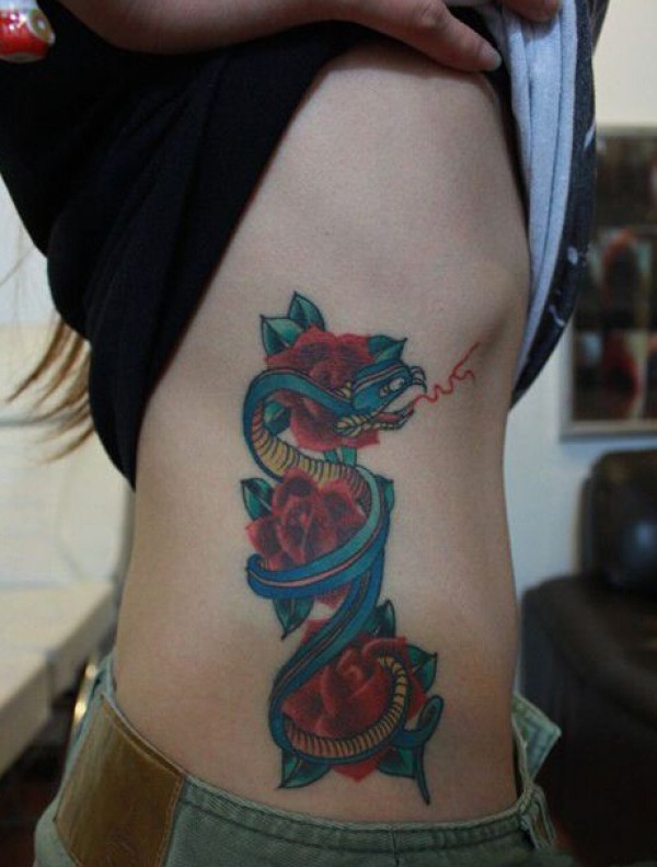 分享一款腰部时尚性感的蝶恋花纹身图案_腰部纹身图案大全_纹身图吧